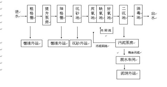 主要生產(chǎn)設(shè)備:粗格柵、潛水泵、細(xì)格柵、沉砂機(jī)、鼓風(fēng)機(jī)、微孔曝氣器、推流器、刮吸泥機(jī)、二氧化氯發(fā)生器、帶式污泥濃縮脫水機(jī)。
