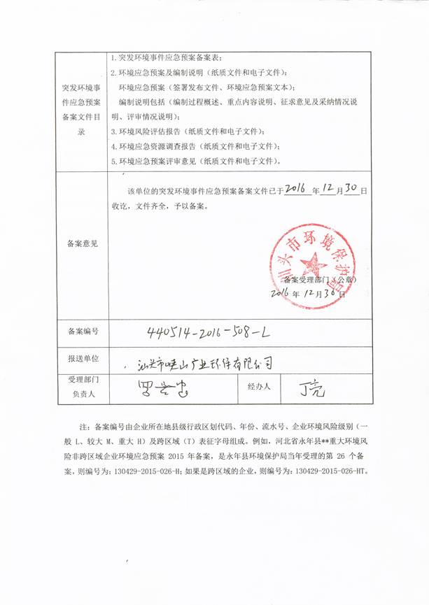 已送環(huán)保局備案